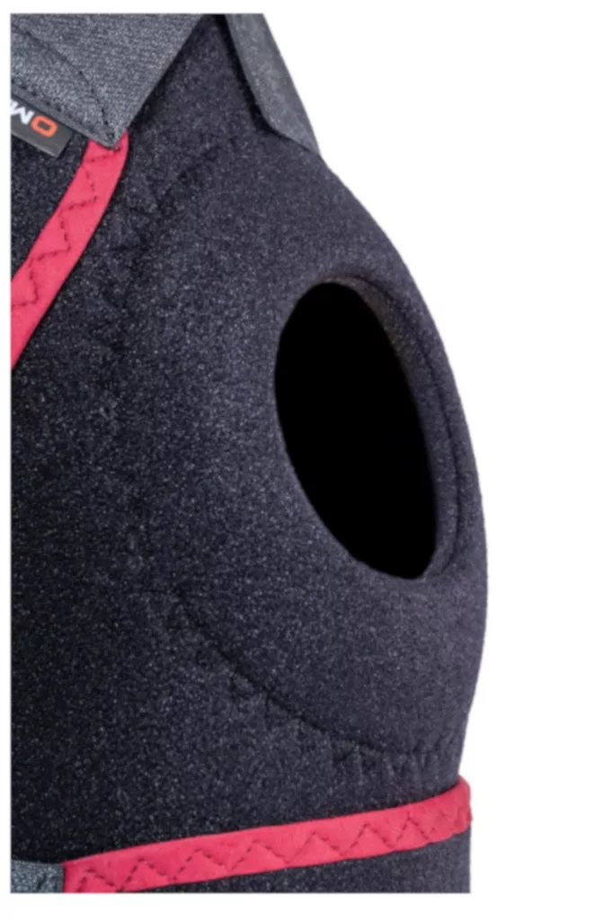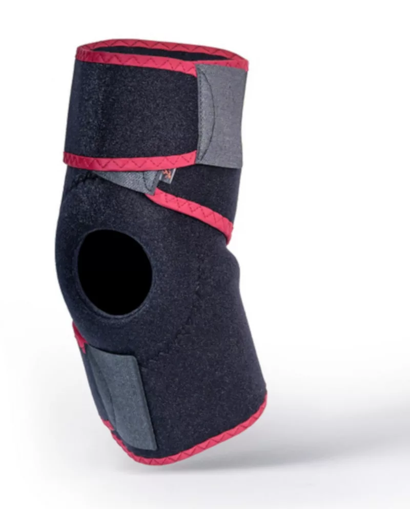 A nyitott konstrukció tépőzárral ellátott, ez megkönnyíti a felhelyezést és az illeszkedést. A szilikongyűrű a térdkalács központosítását segíti, miközben stabilitást biztosít mozgás közben. Az univerzális kialakítás jobb és bal térden is alkalmazható.