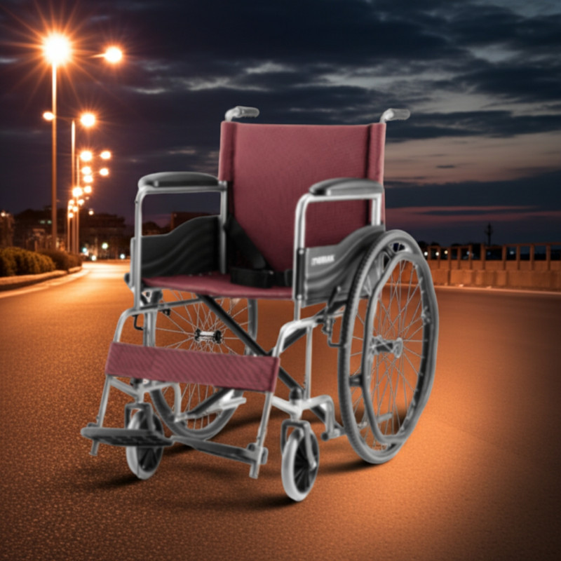 Tömör kerekei révén nincs szükség pumpálásra, így az eszköz fenntartása egyszerűbb. A kerekeken található kézifék és rögzítőfék gondoskodik a biztonságos megállásról.