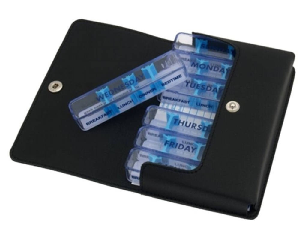 Biztonsági okokból a tokban található egy kártya, melyre a beteg felírhatja a gyógyszereit és adagolásukat. A doboz aljára ceruzával lehet írni.